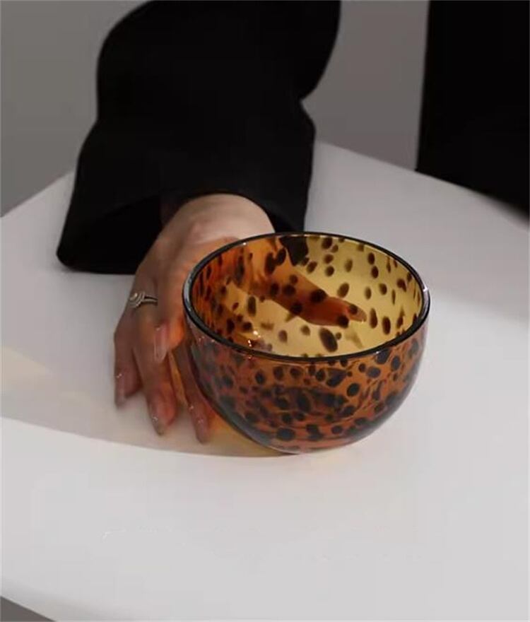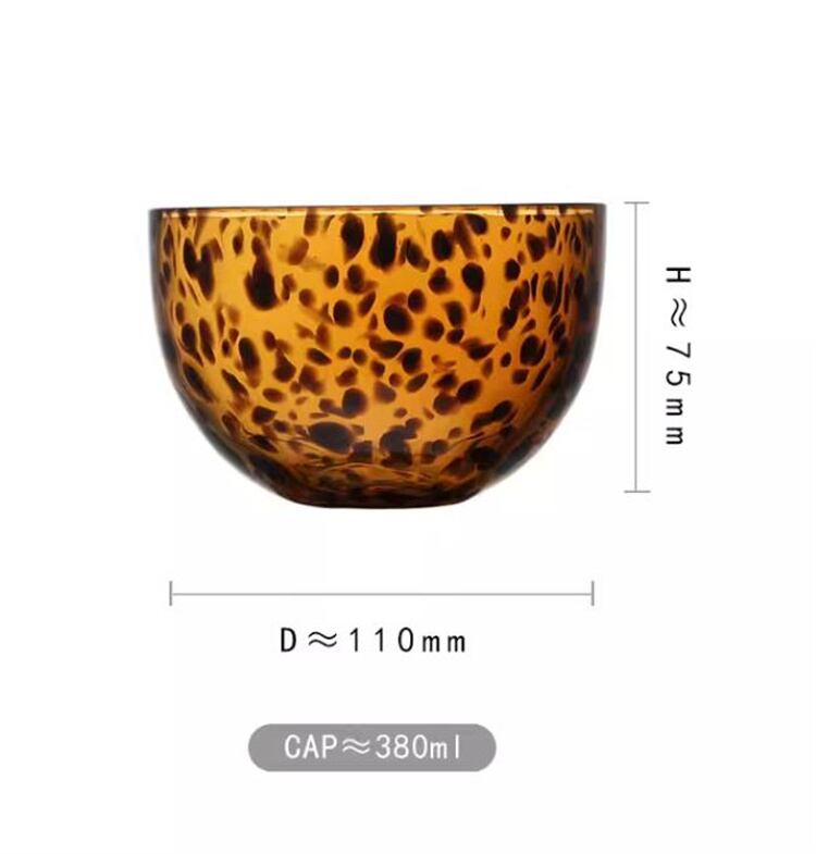 ガラス製 琥珀ヒョウ柄 デザートボウル 300ml 2026新作 自宅カフェ風 小鉢 N2JY2026032614 :dodo