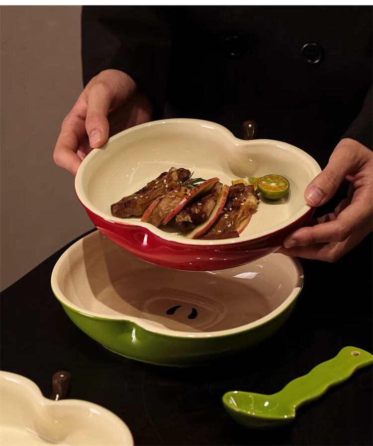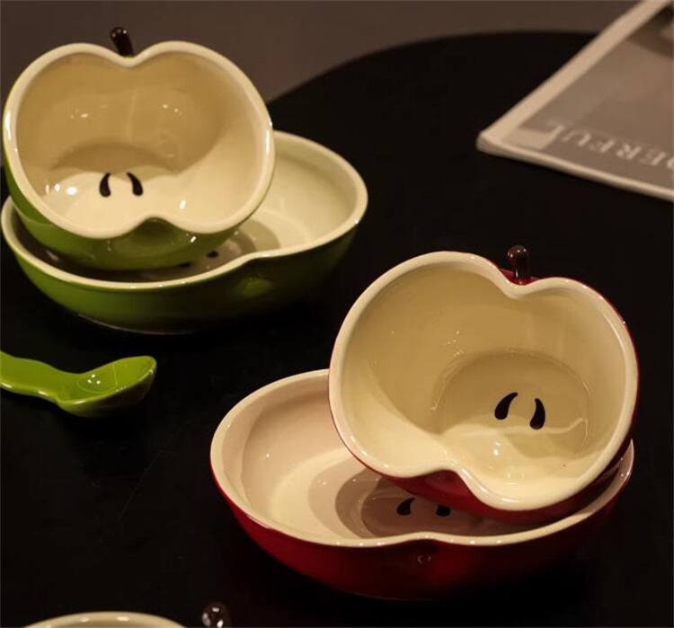 2026新デザインりんご型食器セット 陶磁器お椀家庭用 個人用4点セットスプーン・箸 N2JY2026032607 :dodo