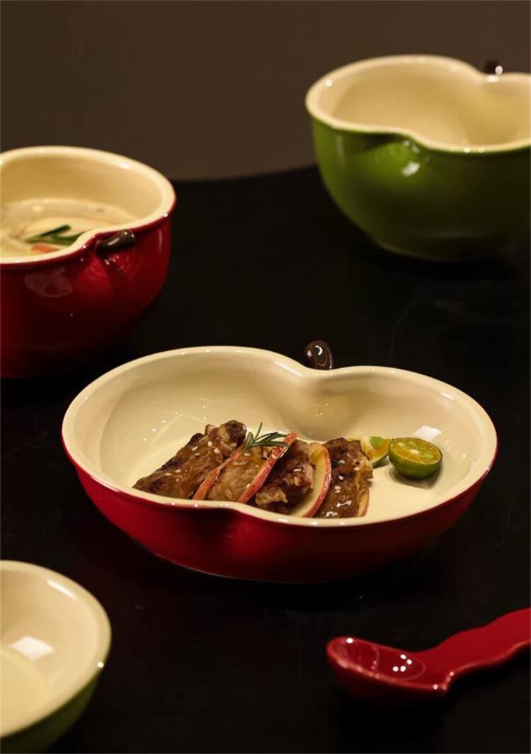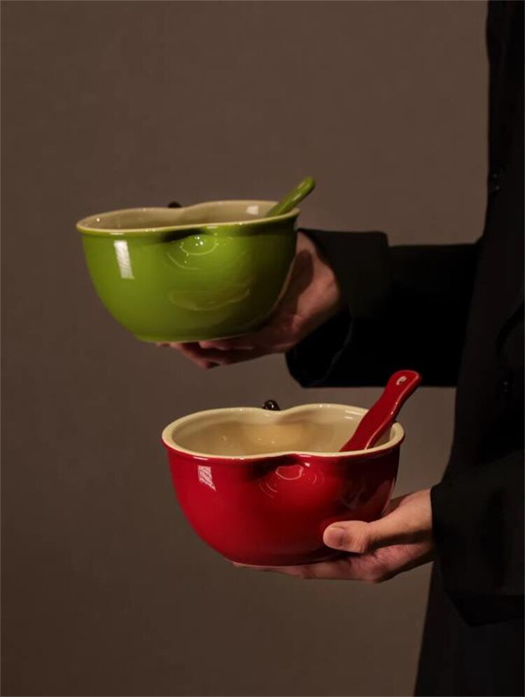 2026新デザインりんご型食器セット 陶磁器お椀家庭用 個人用4点セットスプーン・箸