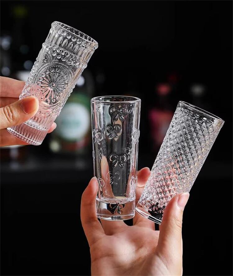 60ml 一口ショットグラス 直筒形 4デザイン ウイスキー 焼酎 カクテル用