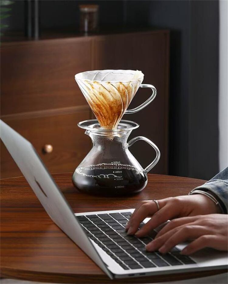 様々なシーンで活躍する手吹き高硼珪酸ガラスコーヒーポットセットです。
