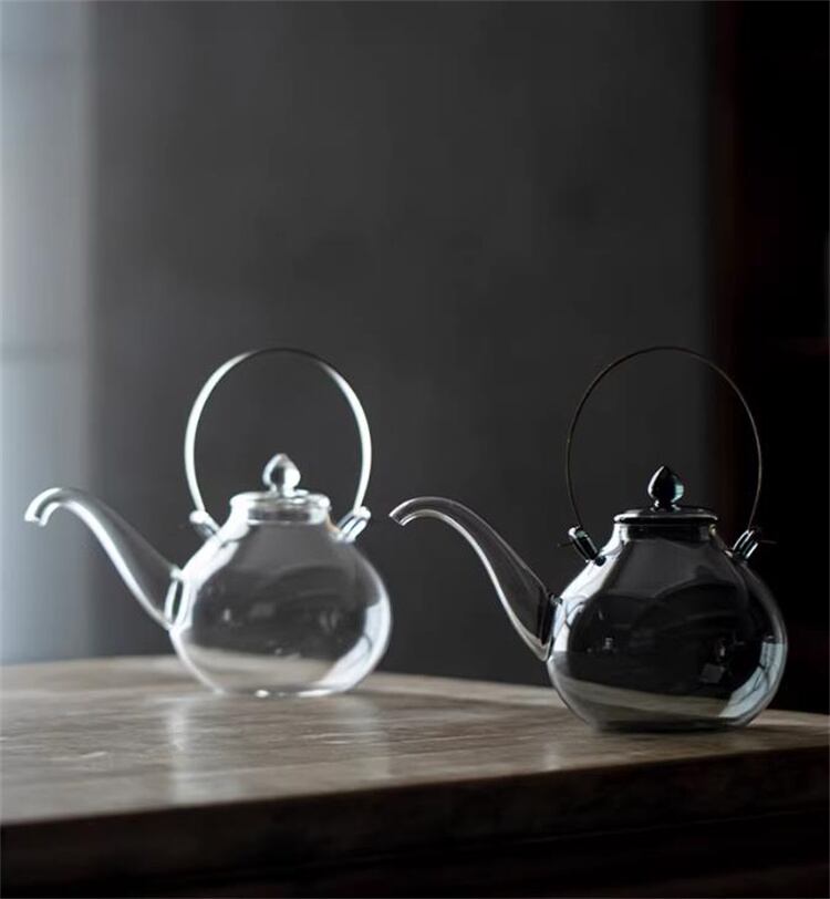 ハンドル付きガラスポット 1L 耐熱性抜群のボロシリケート製 煮出し淹れ分けに使える透明ポット