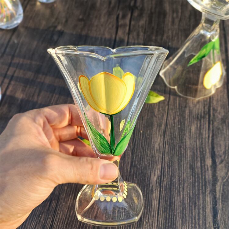 ゴブレット グラス 洗練された グラス 手描き チューリップ アイスクリーム ミルクセーキ ワイングラス N2JY2022081740 :dodo