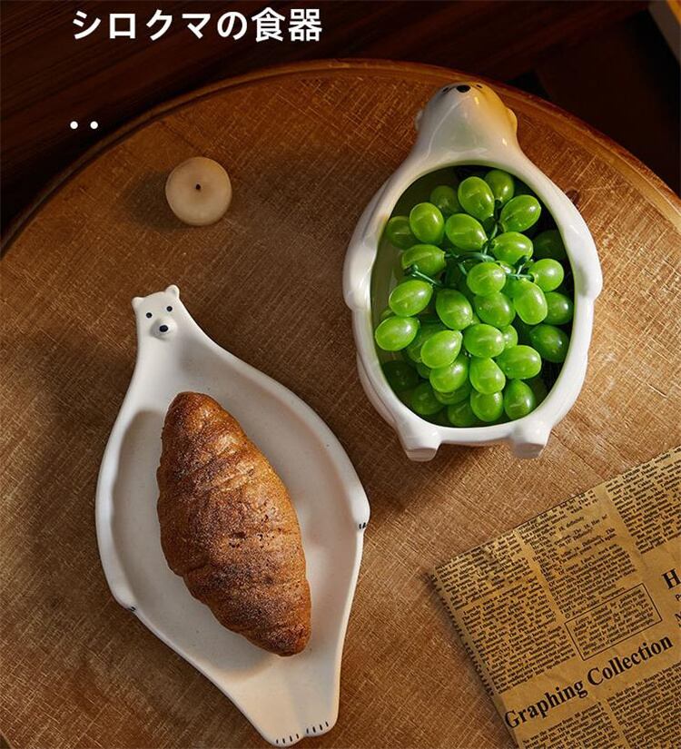サラダボウル 可愛い ホッキョクグマ プレート 家庭用 大人気 セラミックボウル イレギュラー N2JY2022081209 :dodo