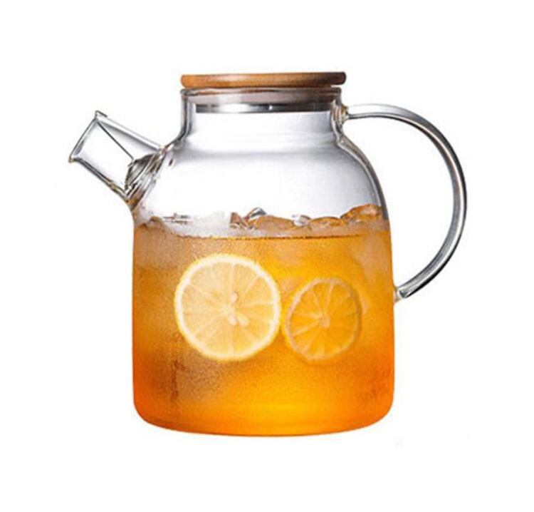 冷却ケトル ガラス フルーツフラワーティーポット 家庭用 スチール製リッドポット 竹製リッドポット