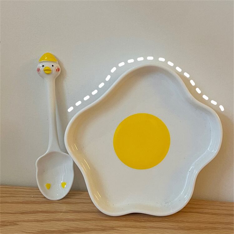 セラミックプレート かわいい ポーチドエッグ イレギュラー スナック サラダプレート 2点セット N2JY2022071316 :dodo