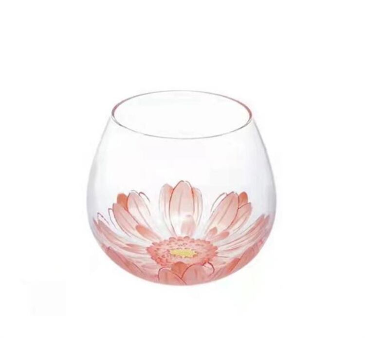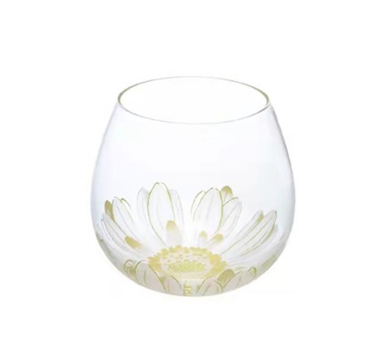 ガラスカップ 小さな淡水 水カップ クリエイティブ タンブラー 家庭用 手描 ジュースカップき 菊飲料 N2JY2022071321 :dodo