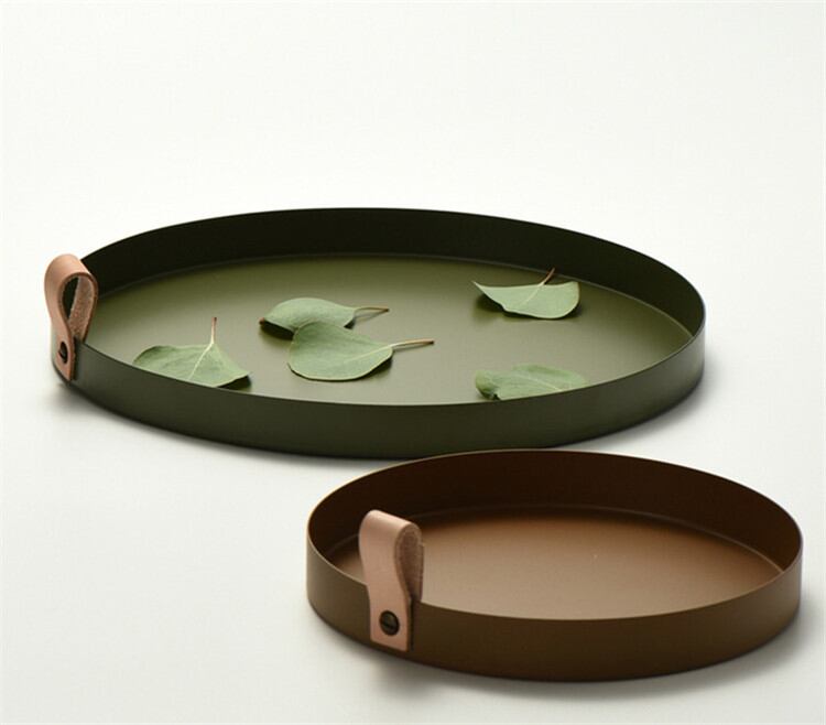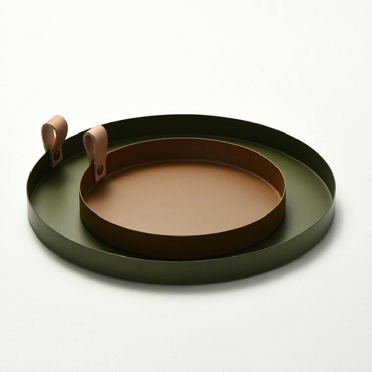 レザーハンドル ラウンド デザインセンス トレイ マルチ 収納トレイ 家庭用 装飾