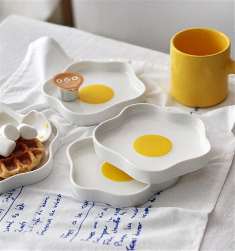 可愛い ポーチドエッグ 色付きライスプレート 小皿 朝食プレート デザートプレート