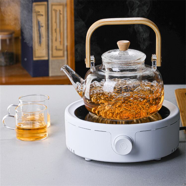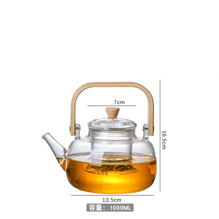 ガラス ティーポット 大容量 デザインセンス 新品 家庭用 木製 ハンドル ケトル N2XY2022042214 :dodo