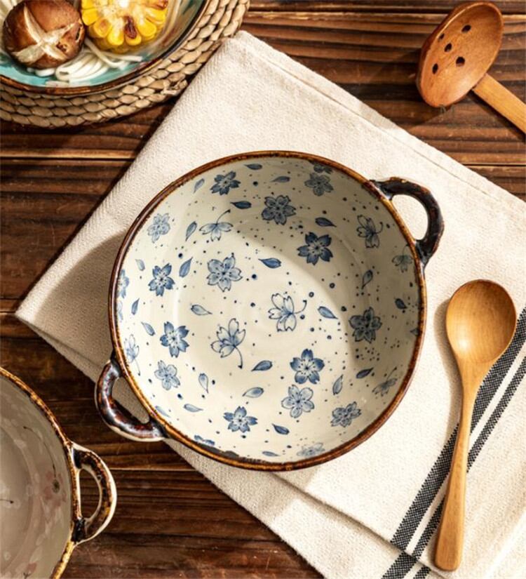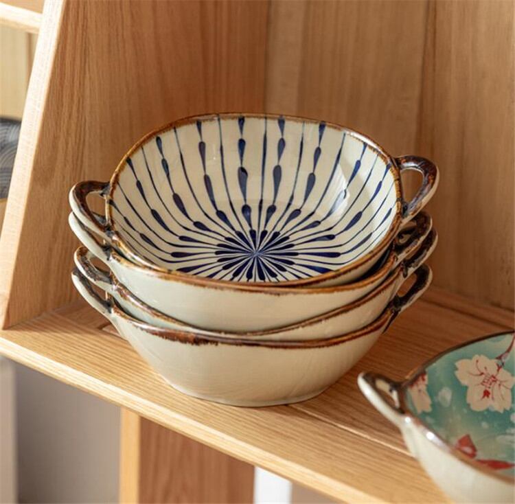 ラーメンボウル 火傷防止 両耳ボウル スープボウル 家庭用 スープ盆地 セラミック N2XY2022041341 :dodo