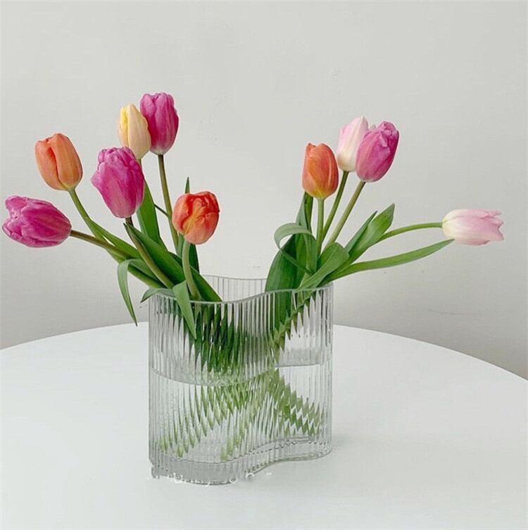 透明な フラワーアレンジメント 装飾 カジュアル 大人気 ガラス 花瓶 ストライプ