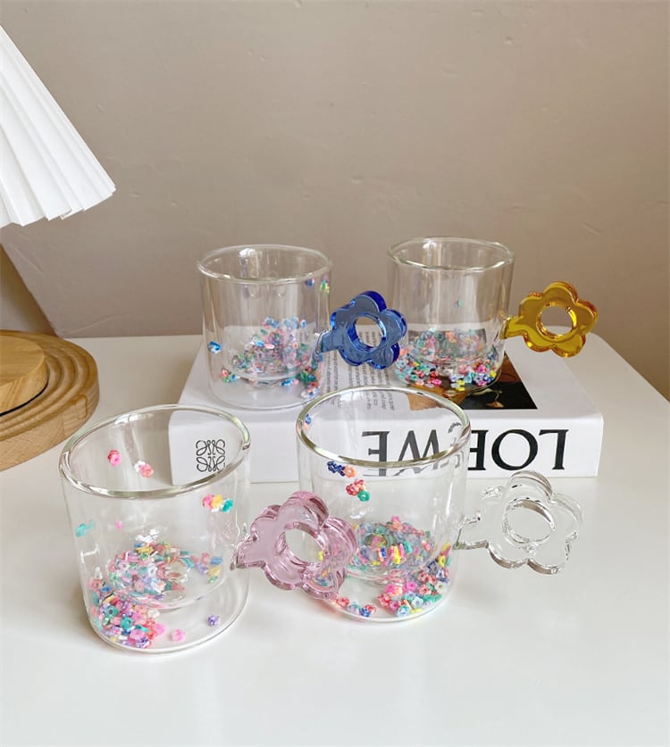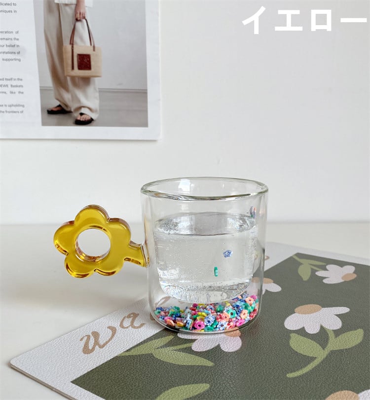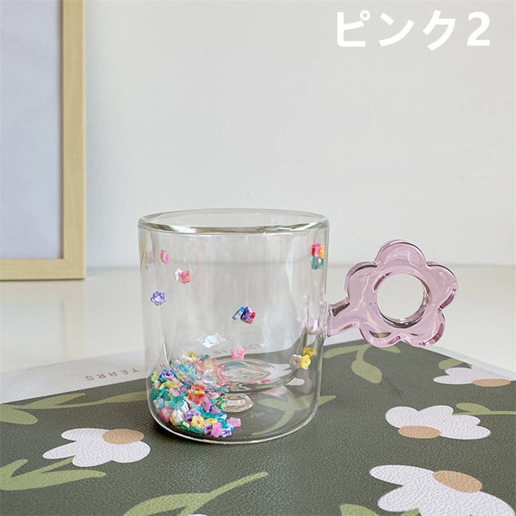 ガラスカップ クリエイティブ 熱耐性 カラー 可愛い 洗練された 花 流れる砂 カップ 熱耐性 大人気