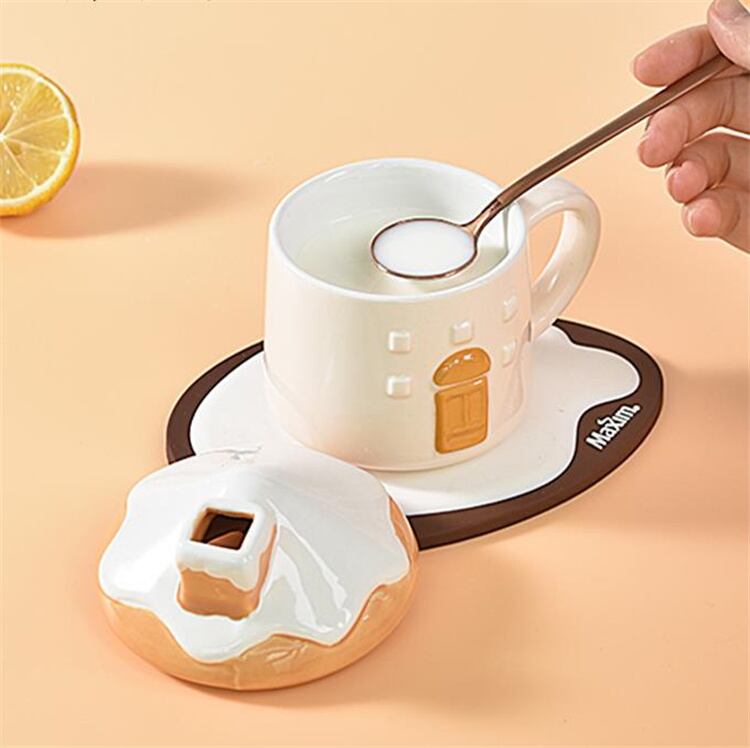 個性 陶磁器カップ マグカップ 可愛い 家庭用 アイデア 水カップ コースター ギャザリング 2点セット N2JY2022111717 :dodo