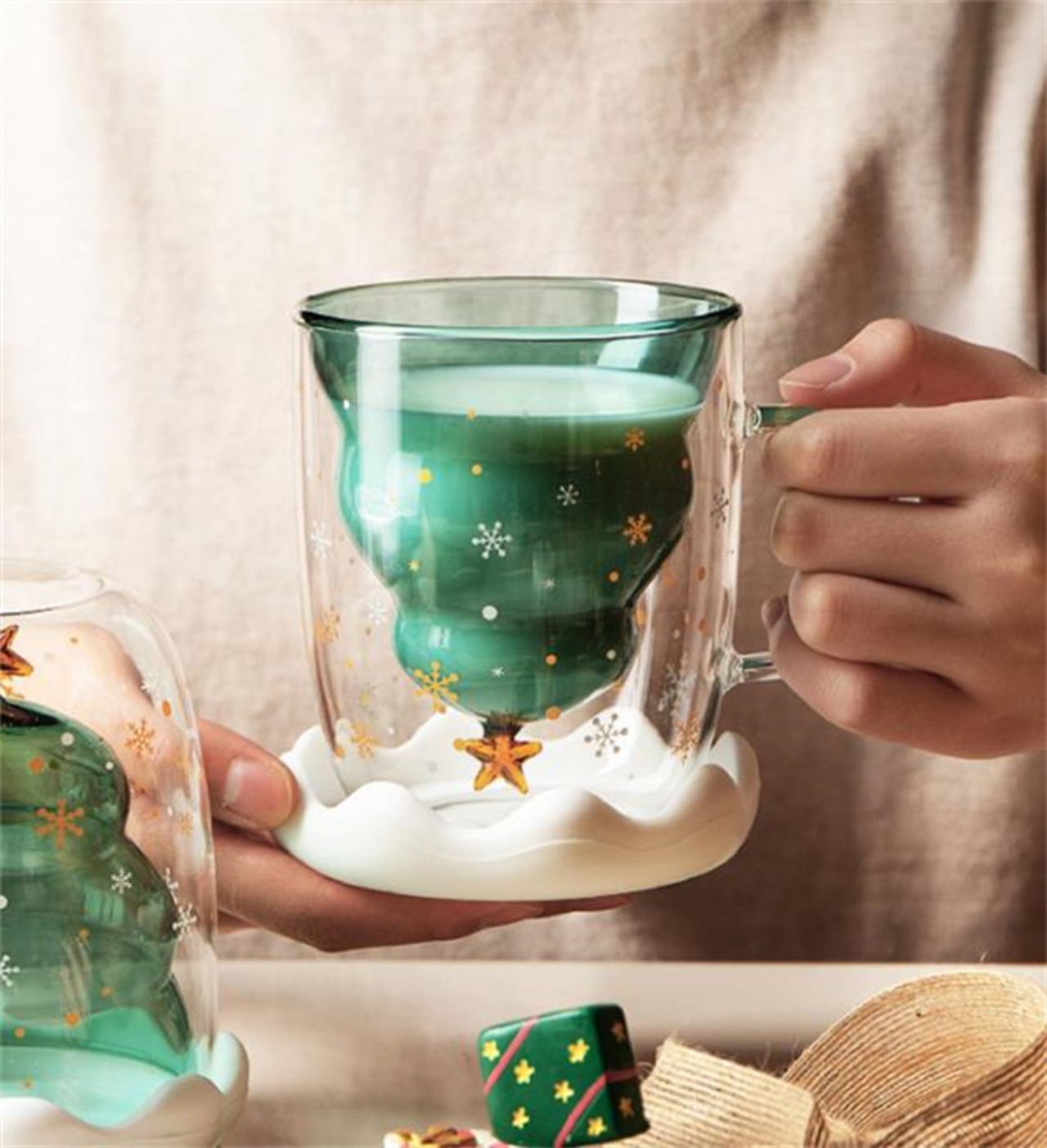 可愛い ガラスカップ 家庭用 耐熱性 クリスマス 2層 カップ レディース ふた付き