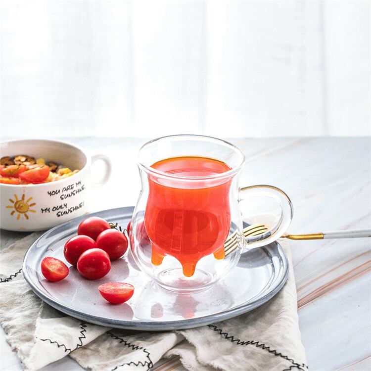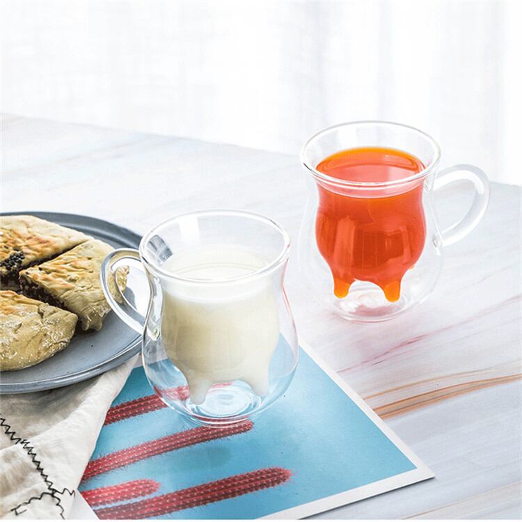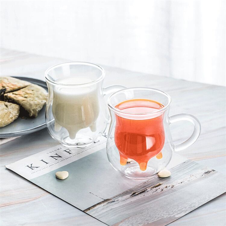 透明な 朝食用ミルクカップ ウォーターカップ ダブルレイヤー クリエイティブ ガラス