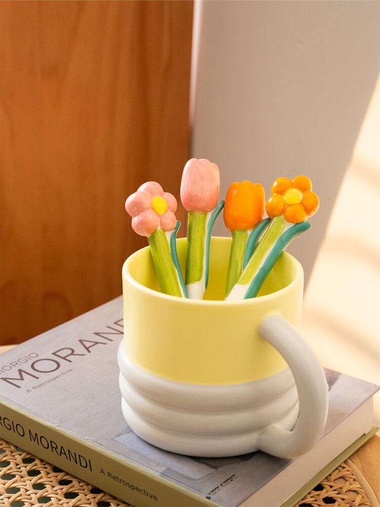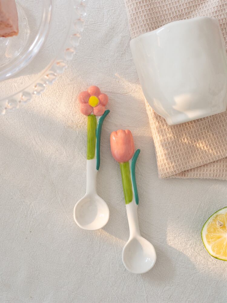 スプーン 花スプーン 陶磁器 チューリップ 手描き コーヒースプーン お茶 牛乳スプーン レストラン N2JY2022120319 :dodo
