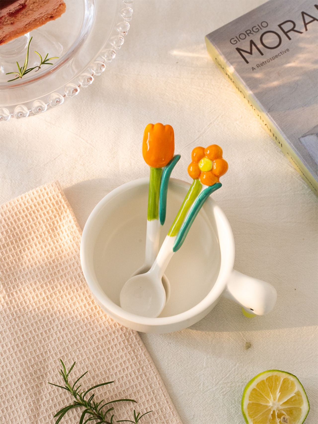 スプーン 花スプーン 陶磁器 チューリップ 手描き コーヒースプーン お茶 牛乳スプーン レストラン