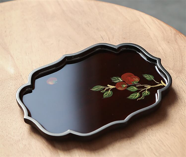 手描き アジサイ トレイ 竹製壺 承円 茶托 中国式茶器 レトロ 乾泡台 トレンド