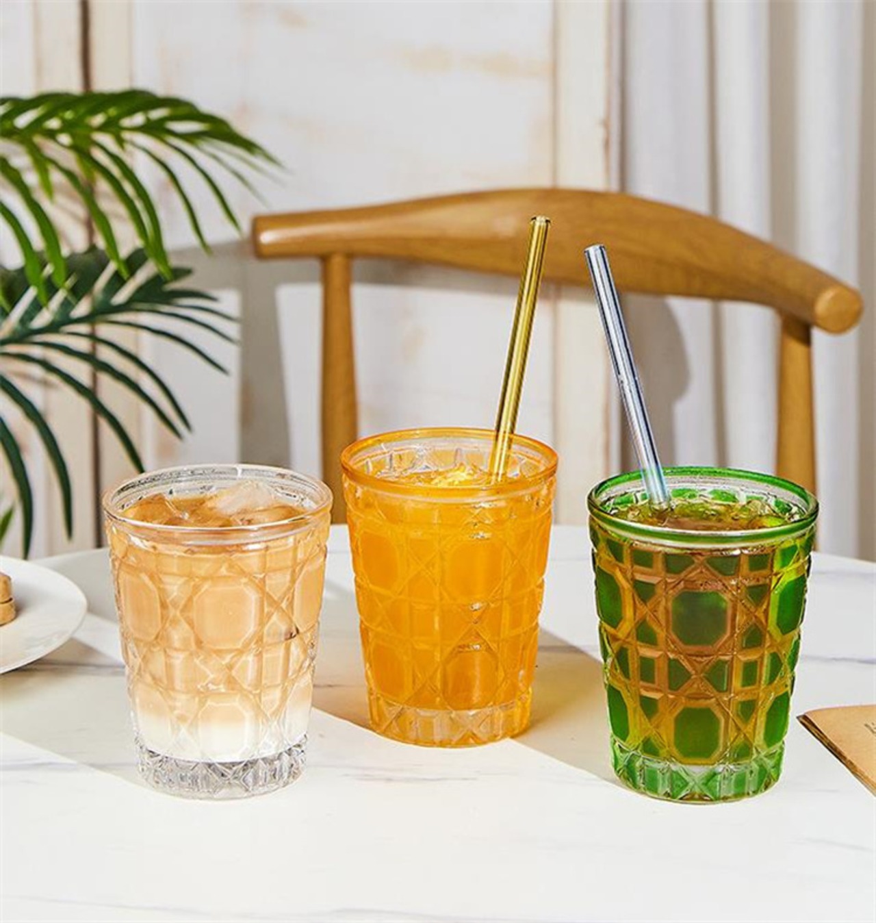 素敵なデザイン ウォーターカップ レトロ チェック ガラスコップ コーヒーカップ 手彫りの花 N2JY2023041536 :dodo