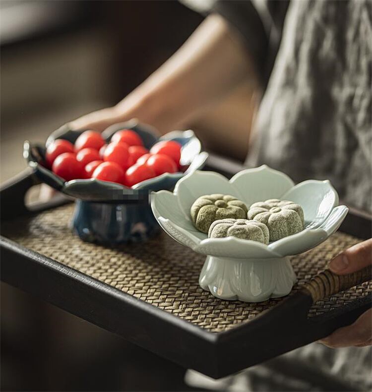 ファッション祭り特価中 果菜皿 精致 蓮の花の形 菓子皿 高脚 水切り皿 陶磁器 茶菓子皿 家庭用 N2JY2023041903 :dodo