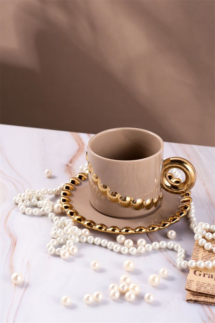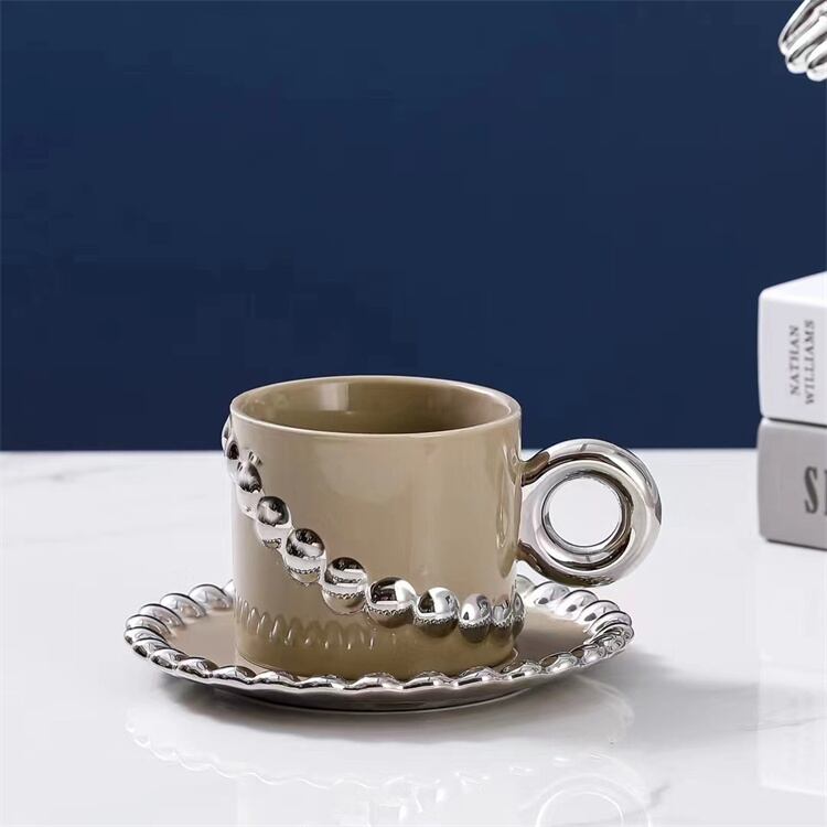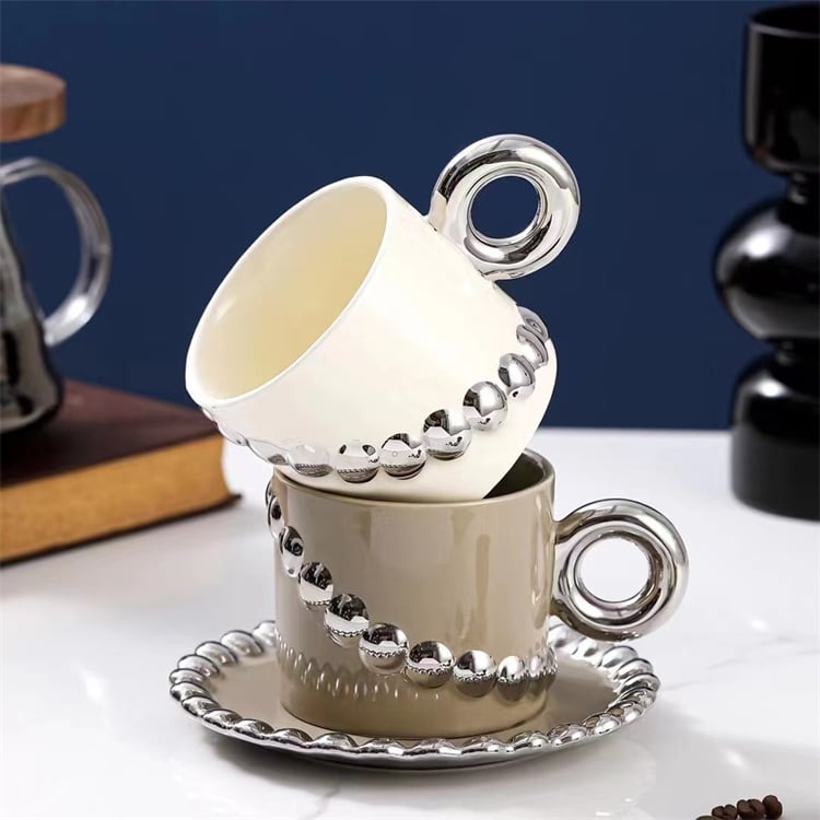 洗練されたシルエット ビーズチェーン コーヒーカップセット セラミックカップ 喫茶店プレゼント N2JY2023070311 :dodo