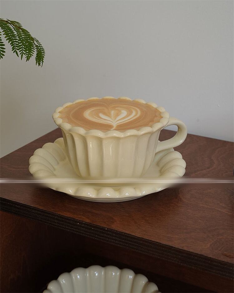 午後ティーカップ レトロ クリームスタイル レースのコーヒーカップ皿 マグカップ ラテ
