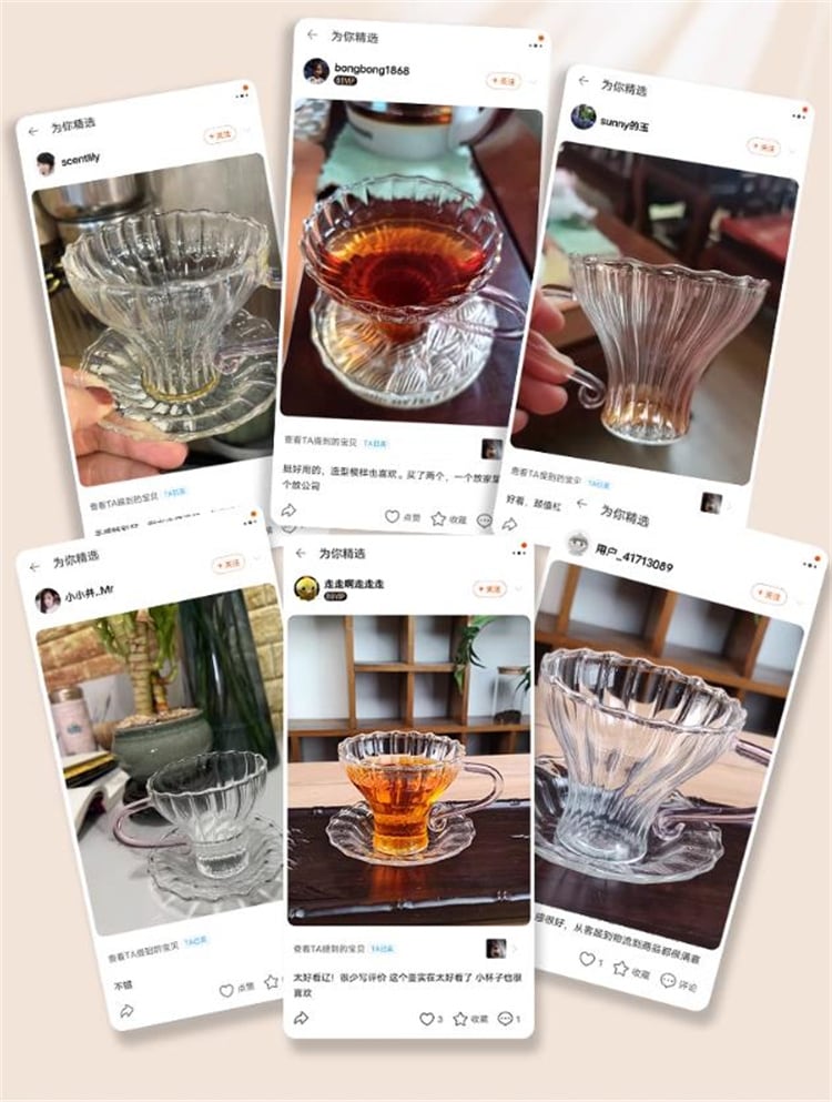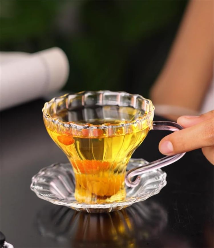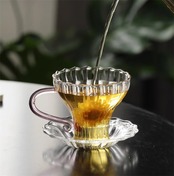 今年売れてます ガラスカップ 笠カップ ティーカップ 取っ手付き 女性 プーアル茶 コースター付き N2JY2023111807 :dodo