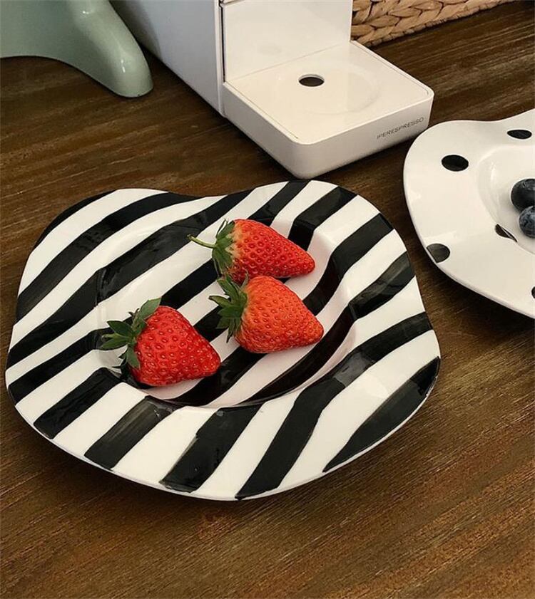 大満足のレビュー多数 イレギュラー 陶磁器 食器 デザート盤 シンプル 波点波盤 朝食盤 ドット ボーダー N2JY2023122804 :dodo