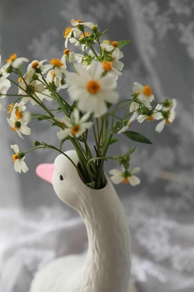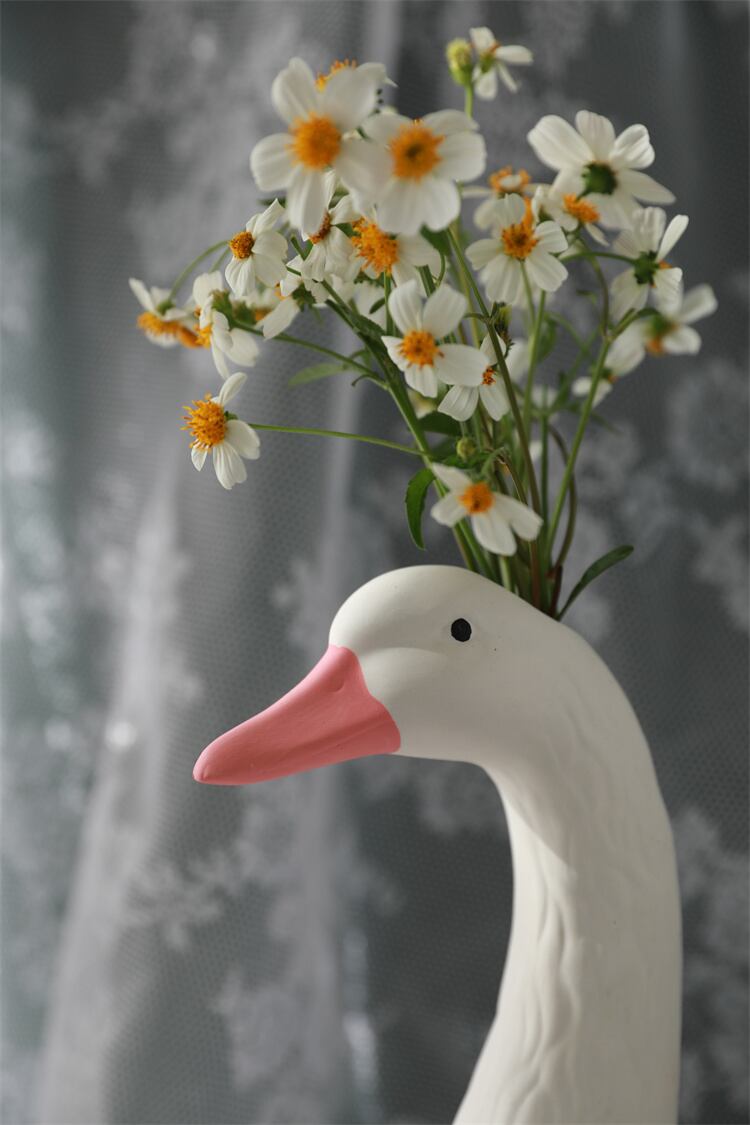 白鳥の花瓶 陶磁器の花瓶 置物 大きなガチョウ シンプル 現代 柔らかい装飾品 ドライフラワー