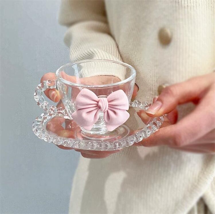 めっちゃかわいい ハイフットカップ 蝶ネクタイ ガラスコップ オート麦 朝食 菓子カップ皿 N2JY2024010203 :dodo