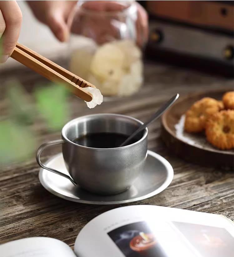 レトロ スクラブ 304ステンレス コーヒーカップ 皿スプーン セット 家庭用 マット 食器