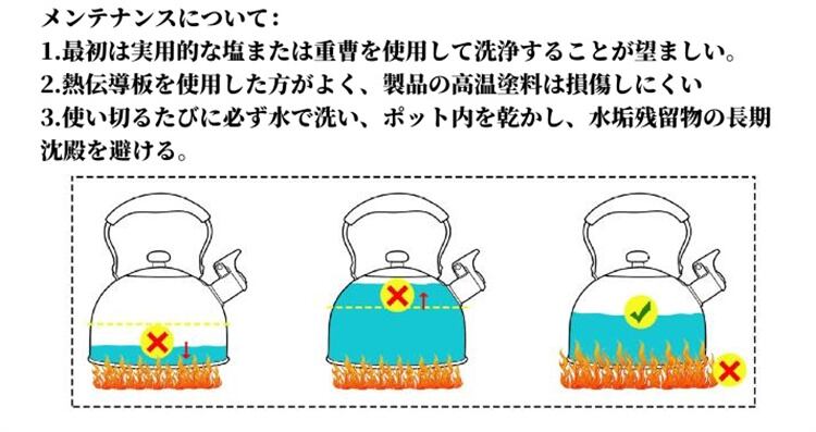 2.水筒はガス炉内で過熱しないでください。