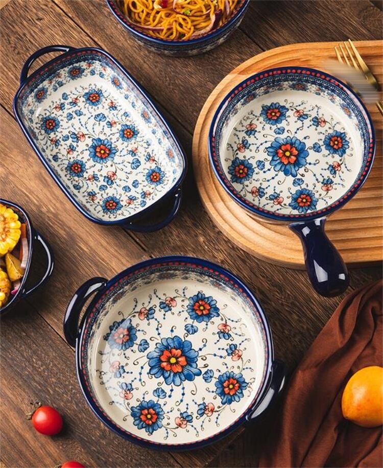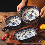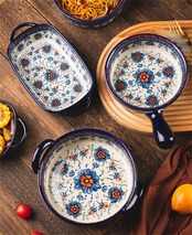 セラミック食器 焼きボウル サラダボウル 両耳ボウル 新作 家庭用 ハンドルボウル