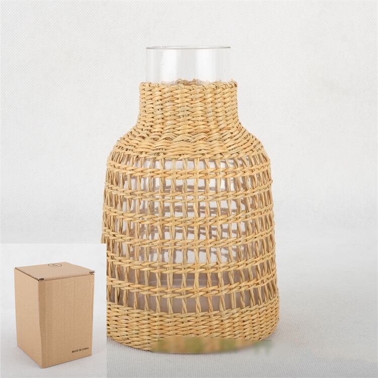 今年売れてます 草編みの花瓶 ドライフラワーの花瓶 編み物 ガラスの花瓶 水養殖物の花瓶 大人気 N2JY2024053109 :dodo