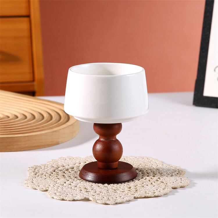 原木材質の台座を採用し、木目が自然で、シンプルな陶磁器の茶碗を組み合わせて、生活の儀式感を高めます