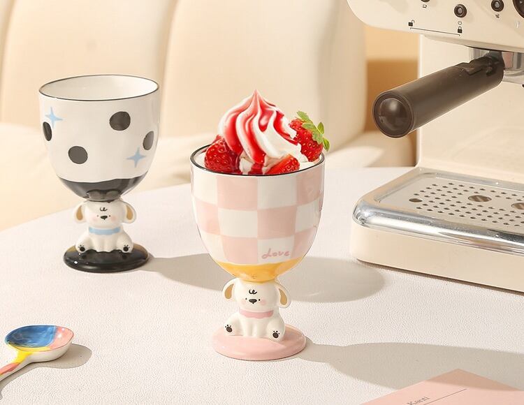 手描き 立体子犬 足の高いカップ 手土産 陶磁器のカップ アイスクリームのカップ