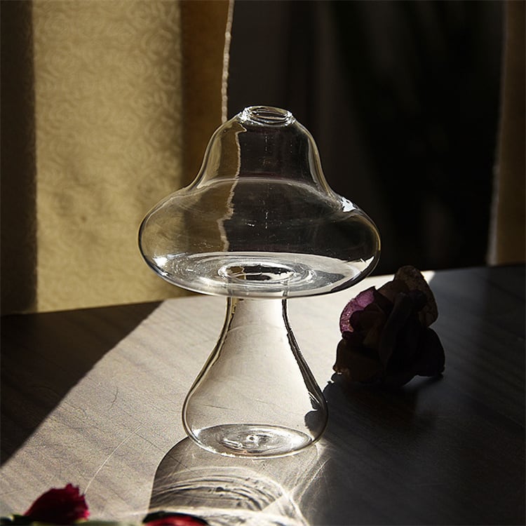今日もまた褒められた日です ガラスの花瓶 大人気 小さい花瓶 水耕栽培用花器 きのこの花瓶 玄関用置物 N2JY2024071810 :dodo
