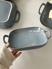角型皿 料理皿 北欧スタイル 窯変釉 両耳セラミック皿 家庭用 釉薬下彩 セラミック皿