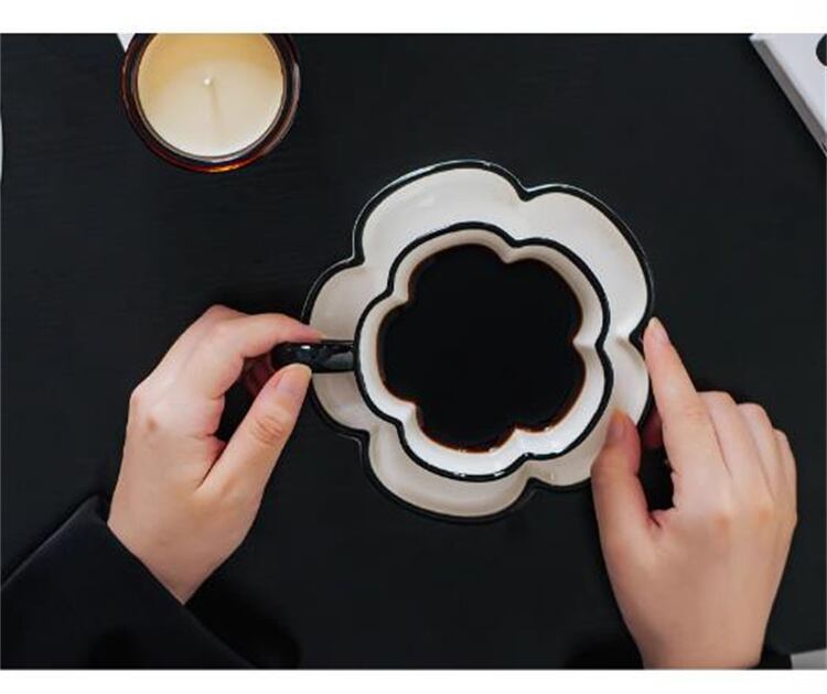オリジナルデザイン「墨色シリーズコーヒーカップ皿」、シンプルな白黒系、霊的なエッジの造形、コーヒーを入れて詩と遠くをそばに残して~