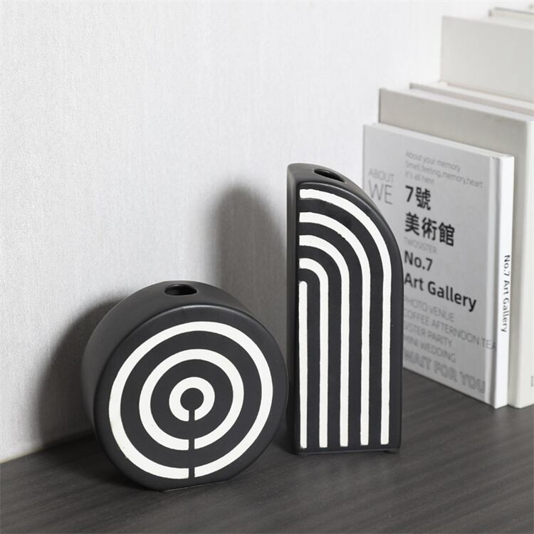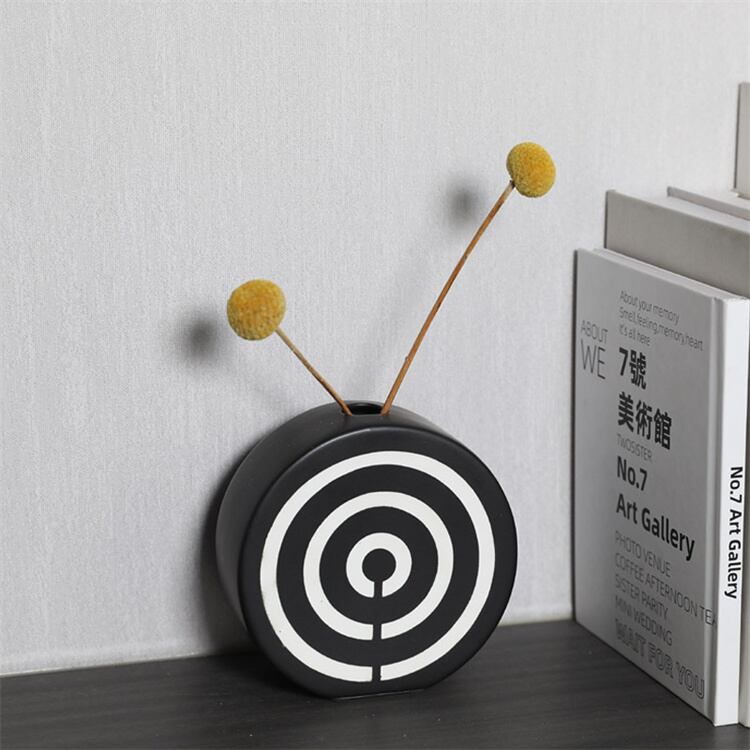 ドライフラワー リビングフラワー 白黒ストライプ セラミック花瓶 デザインセンス 家の置物
