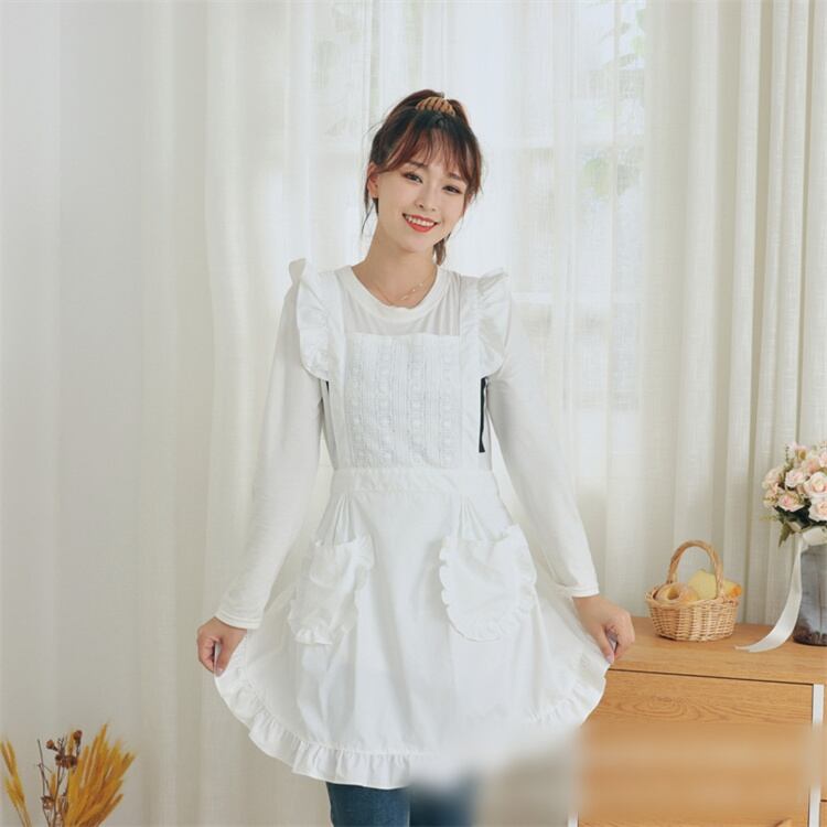 大特価!! カフス レースエプロン かわいい 家庭用 フレッシュ 田園風 エプロン キッチンエプロン 花柄 N2JY2024092406 :dodo