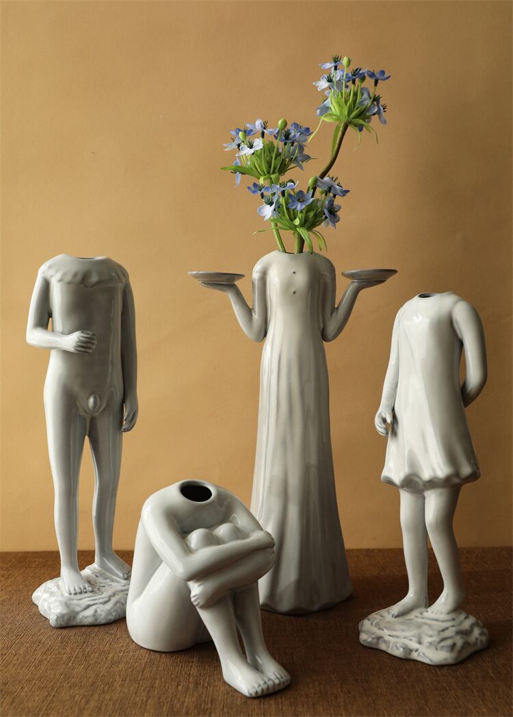 手作り 窯の釉薬 人体彫刻 家の置物 燭台 陶磁器の花瓶 デザインセンス