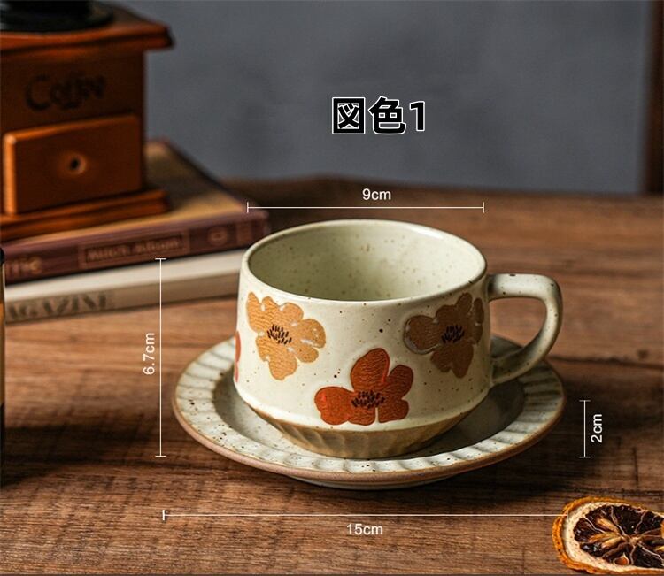 大特価!! 粗陶 陶器カップ つばめ模様 おしゃれな コーヒーカップ 一杯一皿セット N2JY2024120620 :dodo