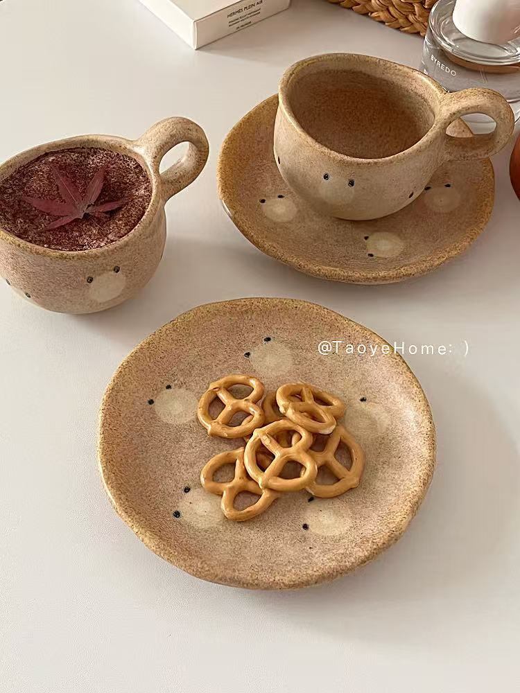 2025AW新品早割 ティーカップ 粗陶 手作り ベア陶磁器カップ コーヒーカップ皿 澳白濃縮カップ N2JY2024123017 :dodo
